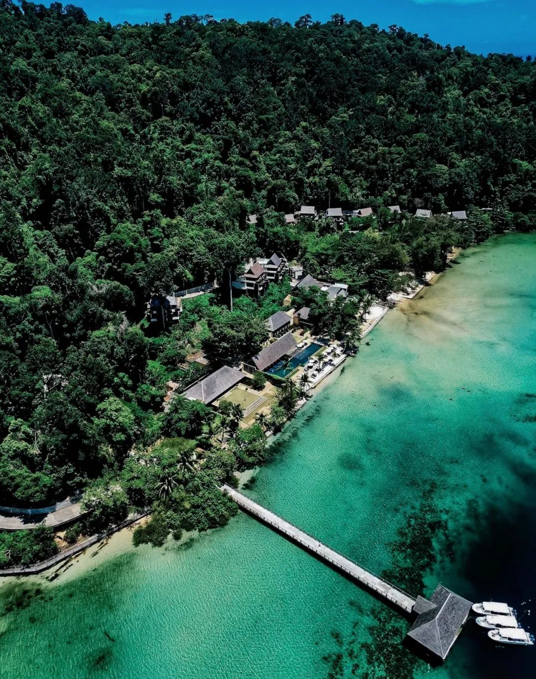卡帕莱度假村可以说是马尔代夫的替代品,因为整体风格和马尔代夫很像,是一岛一酒店类型。来,我们来鸟瞰一下整个度假村吧~