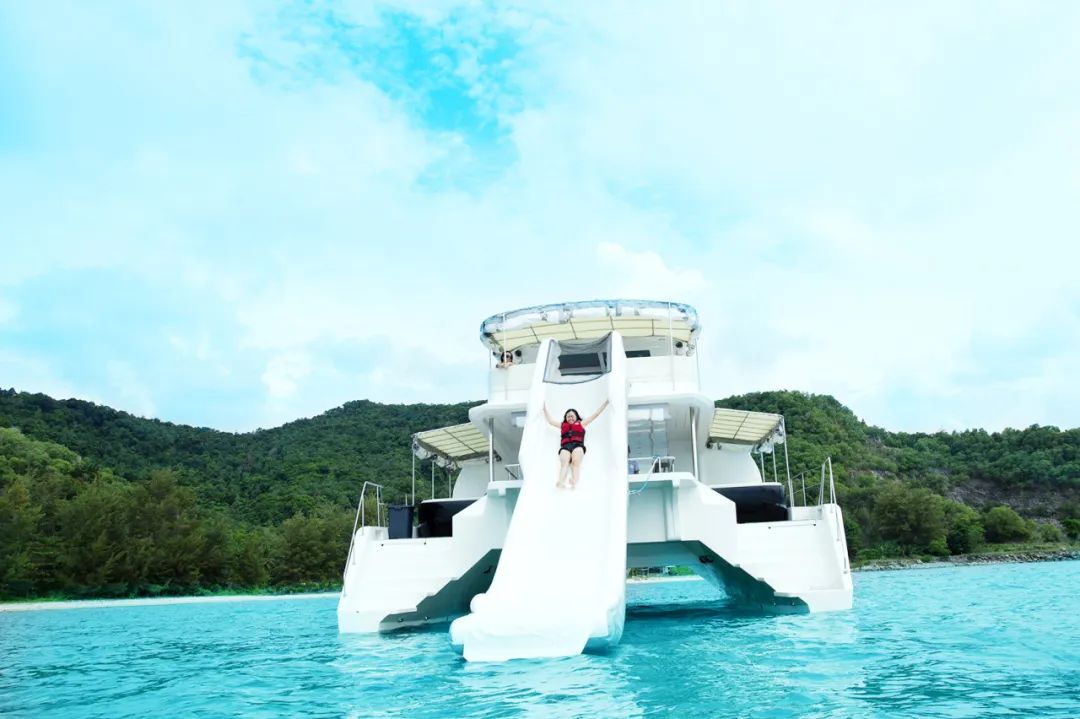 乘坐三层豪华游艇出海,尽享水上乐趣,欣赏360°绝美海景。