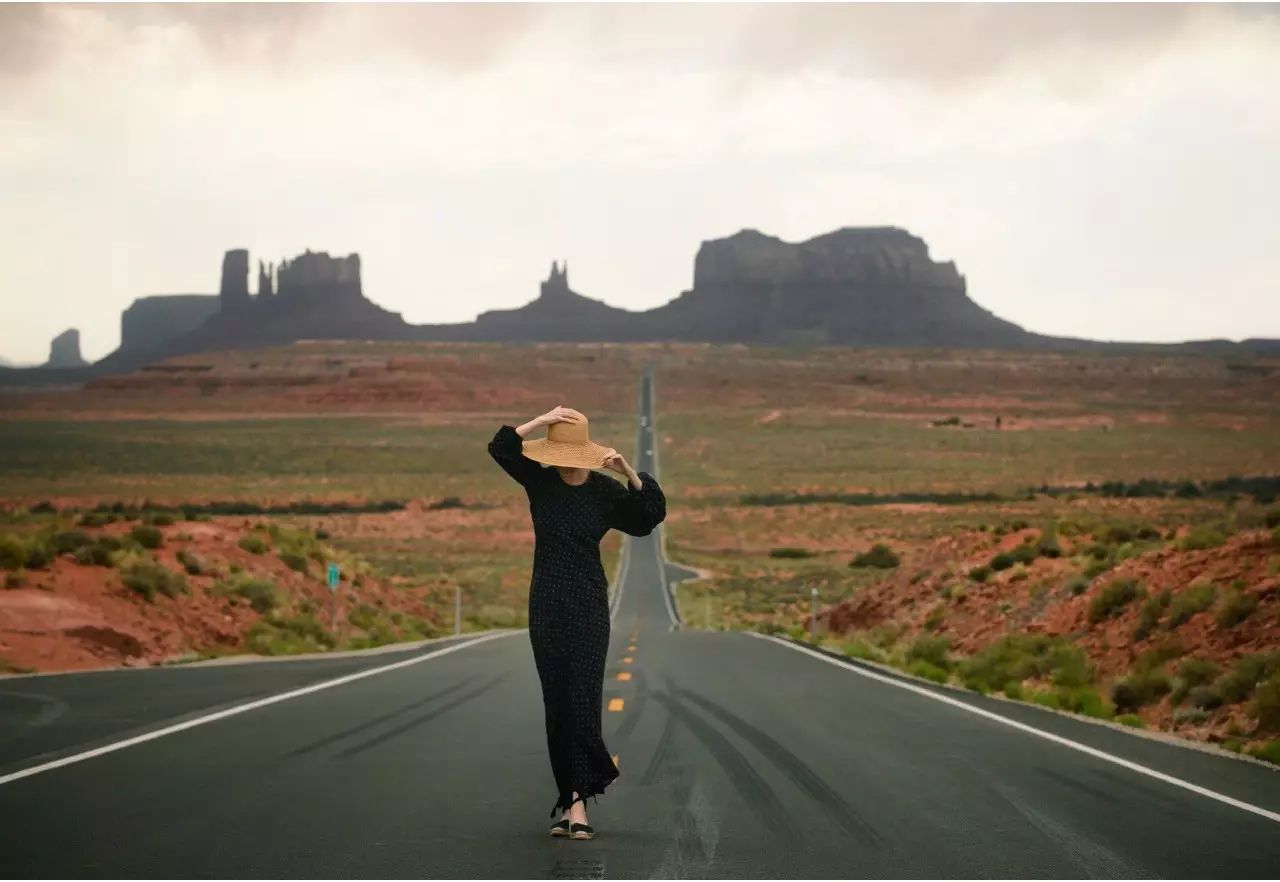 如果你沿着我站着的路开车,就能看到整个纪念碑谷。仿佛另一个世界的幻觉突然出现在你面前,就像海市蜃楼一样的体验。这也是我很喜欢自驾的原因。在无聊的道路上,你常常能看到令人惊叹的景象。这种节奏令人着迷。
