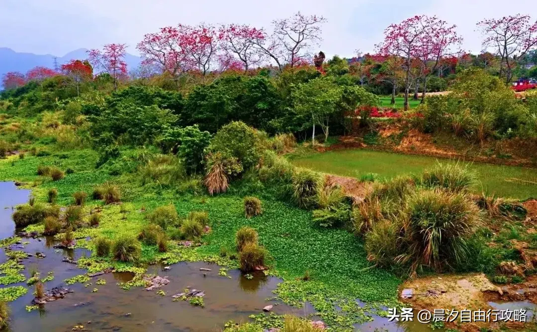 村里的红木棉火车景观也是一道独特的风景,可以拍到火车在田野间穿梭,树木披上红色的火焰,仿佛童话里的春天。附近的山间公园也适合散步和骑自行车,在欣赏木棉花的同时,还可以漫步公园,感受美丽的乡村风光。