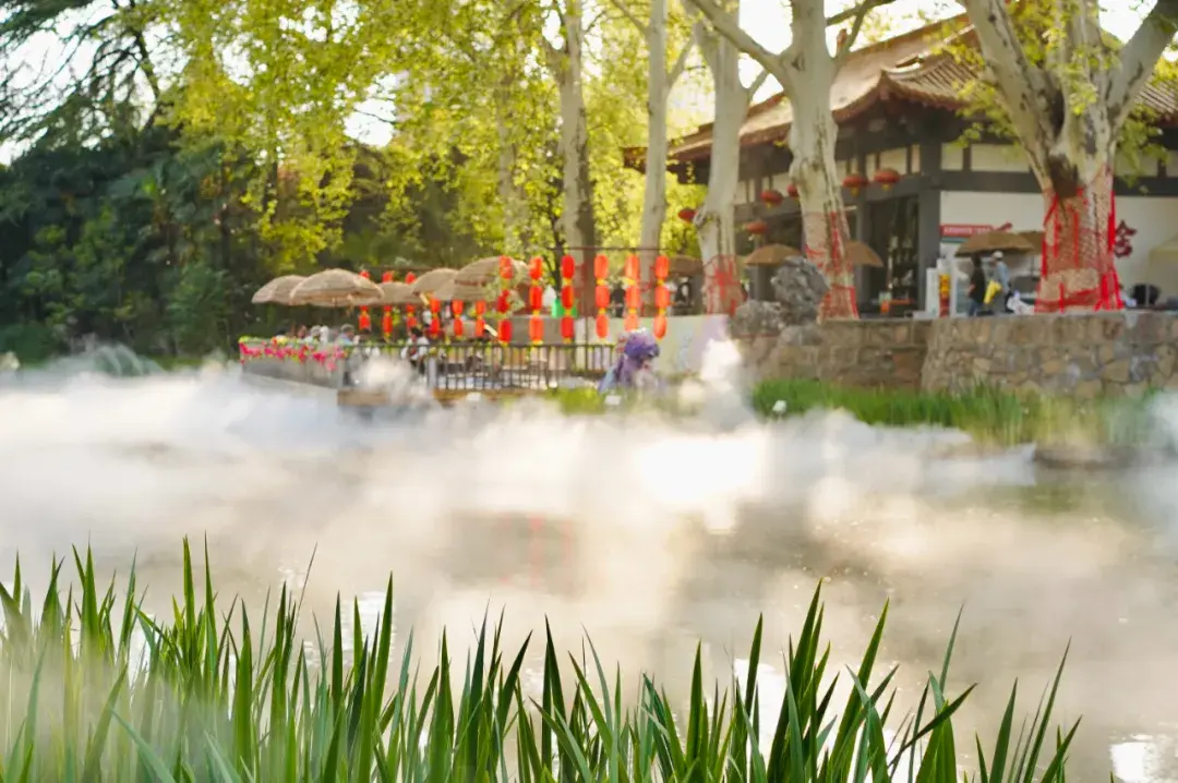 公园里的望城茶社很推荐,白天在河面上放置干冰,制造云雾效果,很有仙气。