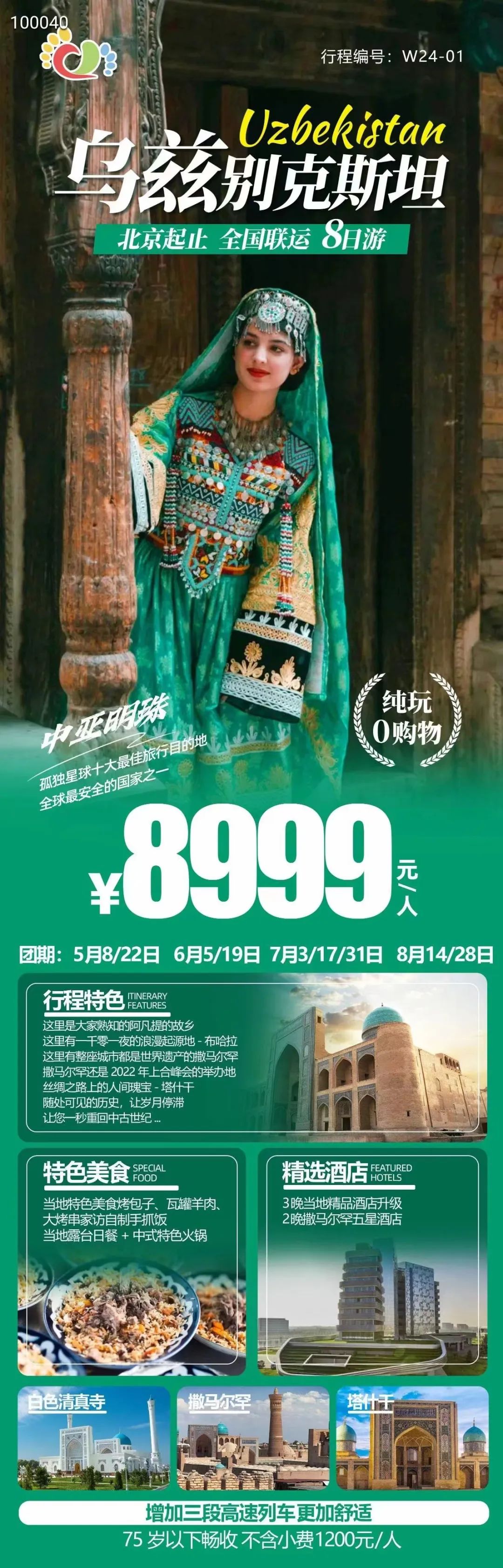 哈萨克斯坦+乌兹别克斯坦8日往返游