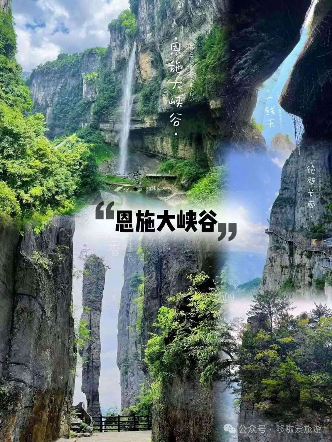 恩施的核心景点有:恩施大峡谷、苗寨、蝴蝶崖、地心谷、石门河,还有人气爆棚的漂流木船,如果时间充裕的话,建议还可以去恩施女儿城、索布垭石林、神农架。