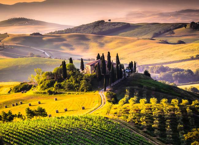 今天我们将游览意大利著名的奥尔恰谷,这里有天然的葡萄园,参观葡萄园,品尝特色葡萄酒。晚上返回锡耶纳自由活动。