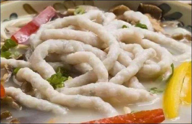 鱼面是闸坡渔港名菜之一,俗称敲鱼面,其主料仍以鲐鱼为主,加入一定比例的淀粉,用四个字概括:软滑、香甜、爽口;