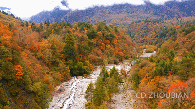 到了金秋十月,喇叭河的秋叶开始泛红,满山的缤纷色彩正式苏醒。