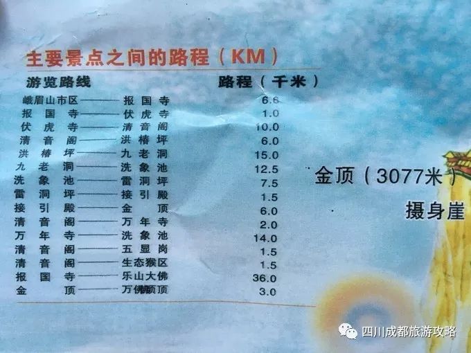 太子坪徒步至金顶—金顶索道至接应殿—接应殿徒步至雷洞坪汽车站—雷洞坪观光车至报国寺站—报国寺站乘12路公交车至高铁站—峨眉山高铁站返回成都