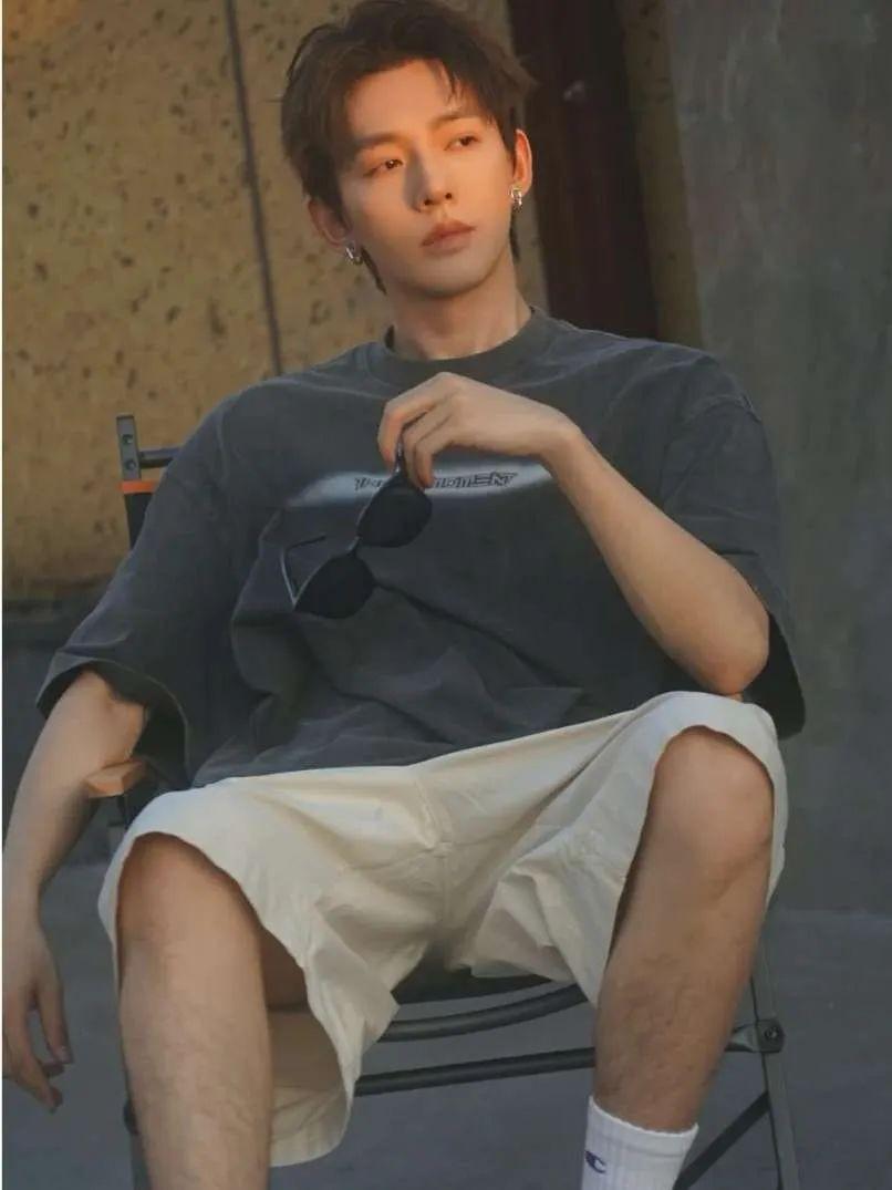 胡先煦身上的藏蓝色短袖衬衫也十分可爱,上面有一个大大的花纹。不仅衣服本身很独特,他还用不同颜色的长袖作为内搭,打造出不同长短的层次效果。这一招很有个性,适合普通男生借鉴。
