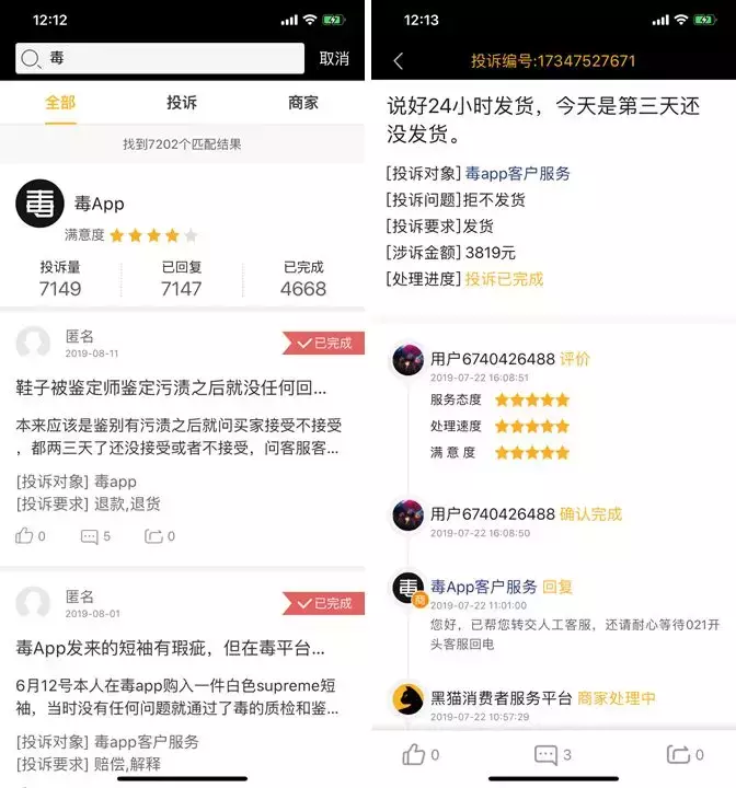 市场上有句俗语叫“一度app最大”,近两年度app的火爆程度有目共睹,但也曝出一些负面消息。在黑猫投诉上,关于度app的投诉量为7149条(nice为1913条、世货为41条、Yoho!Buy为189条,以上数据截止8月16日),这可不是个小数目,不过也和度app交易量大有关。
