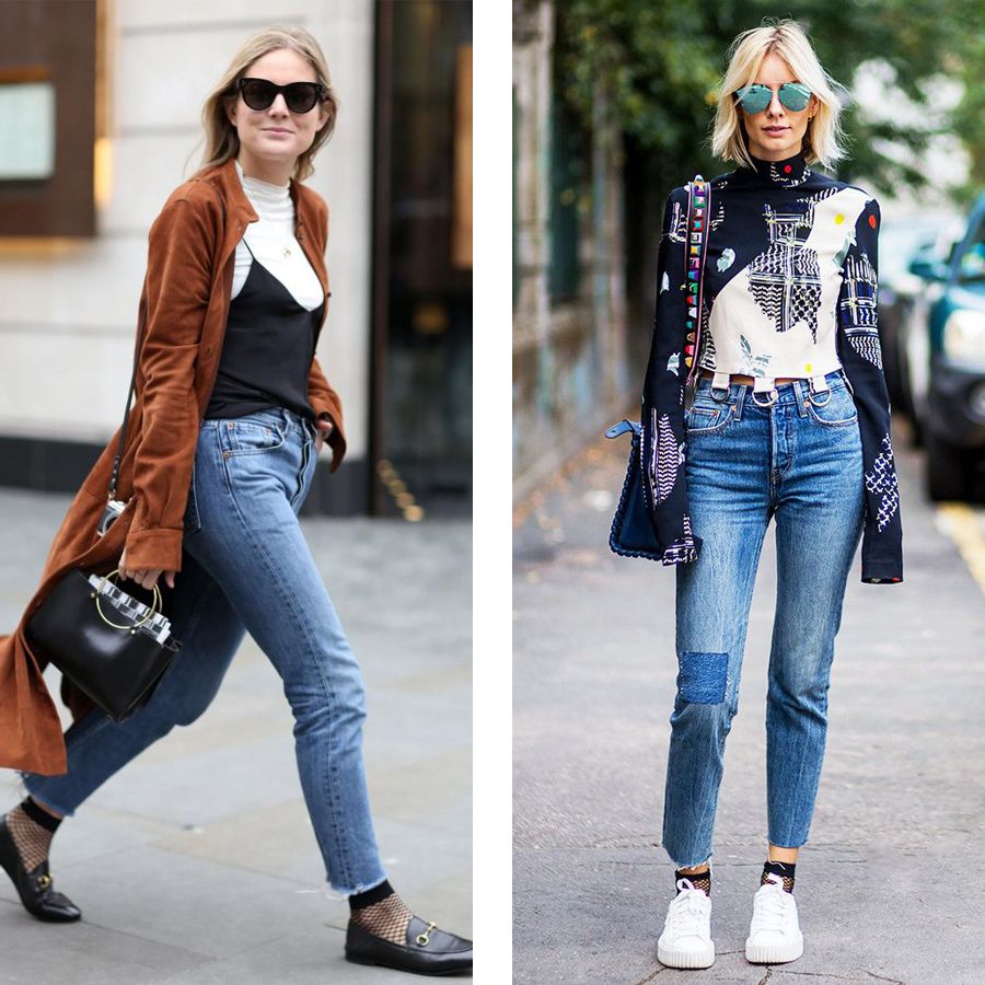 如果想露出袜子,可以搭配九分裤或者八分裤,露出一半的袜边,既时尚又不会显得尴尬。