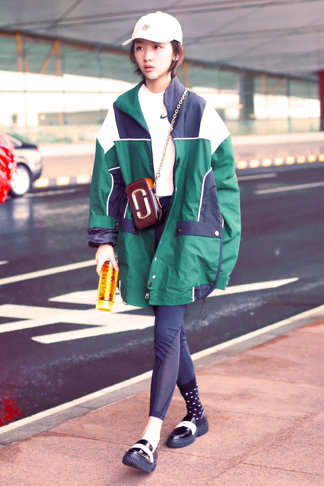 宋茜和江疏影穿的运动鞋露出了袜边的一小段,在视觉上并没有影响到腿长,横条纹的细节也增添了几分学生气,时髦又减龄。