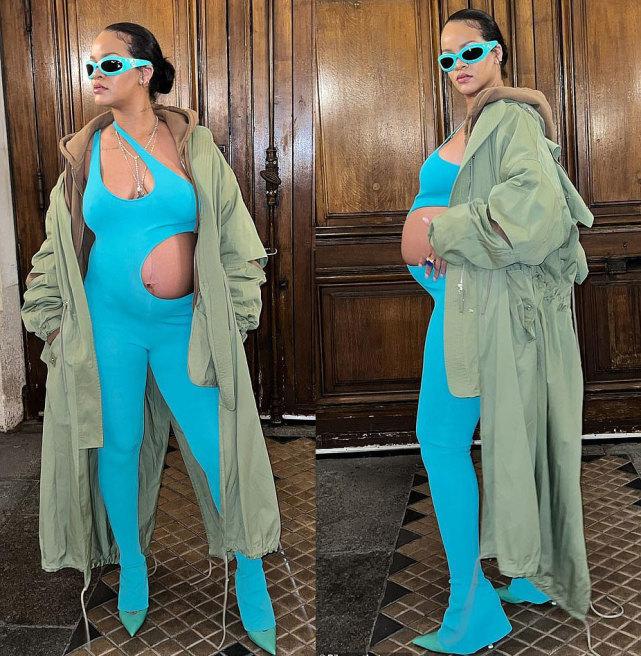 蕾哈娜产后的穿搭频频引发热议,颠覆了大家对孕妇装的认知,即便是在寒冬,她也总是露出圆圆的大肚子。